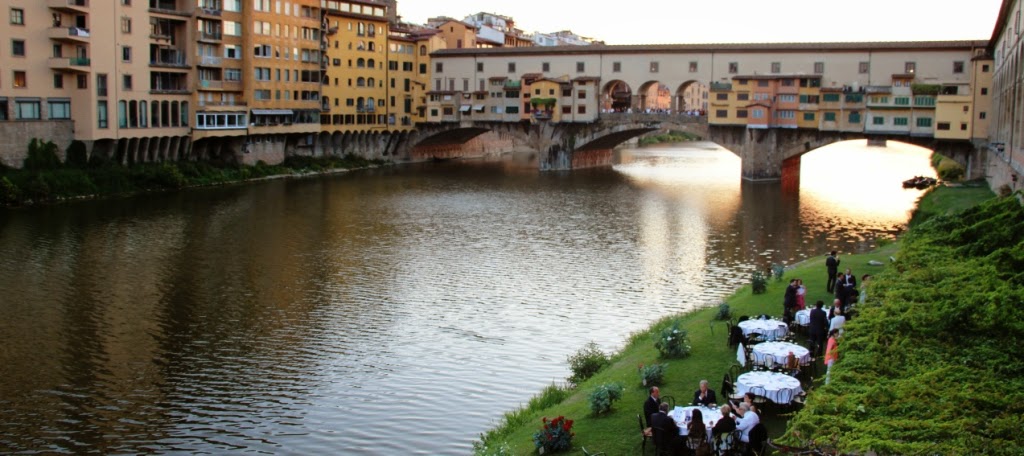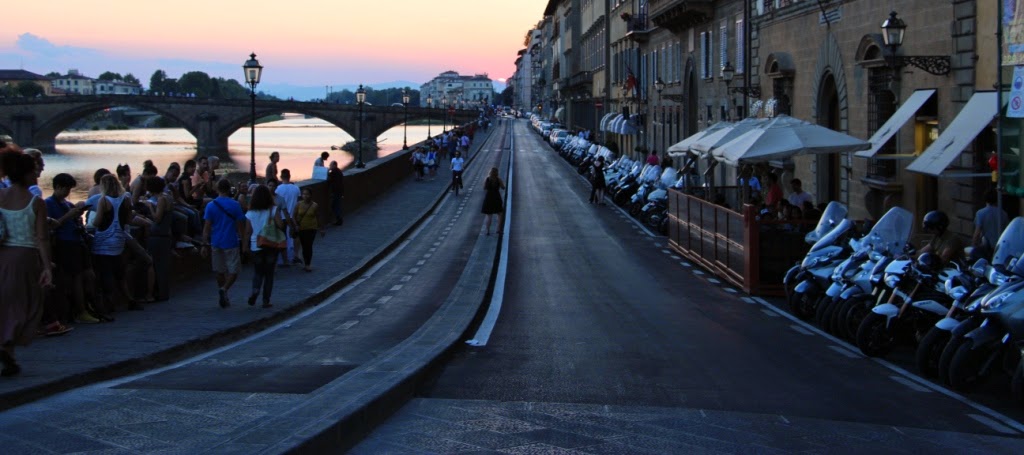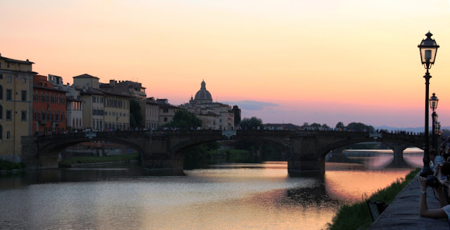 | Except we wanted one last look at the Ponte Vecchio and discover all gathered to enjoy the sunset .... |