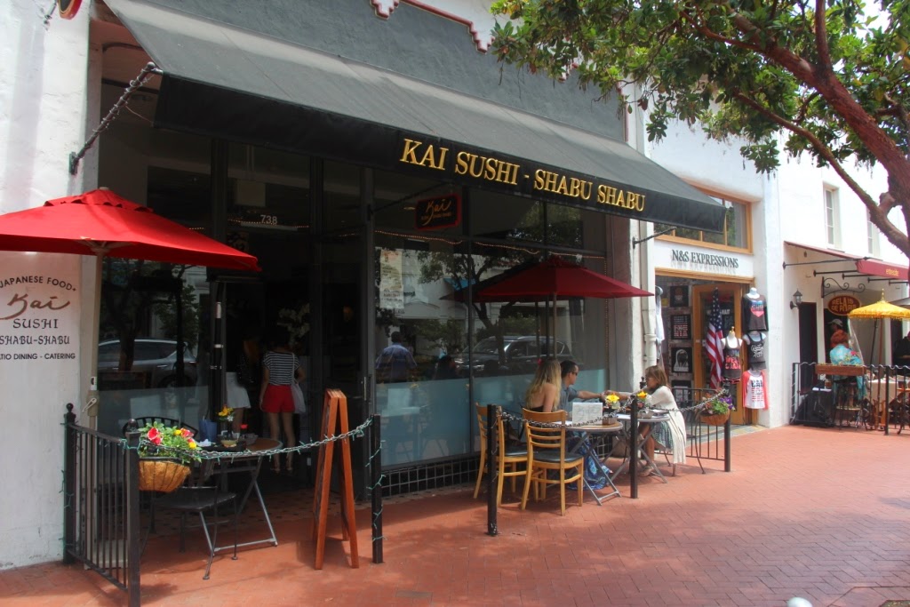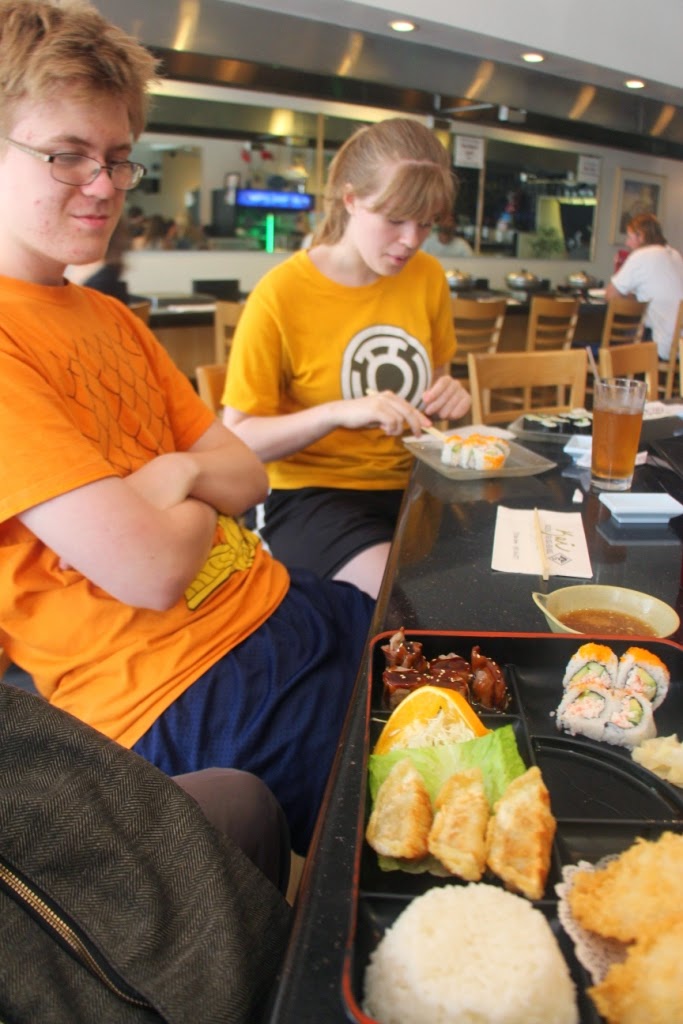 | Three hungry travellers found a spot for some sushi |