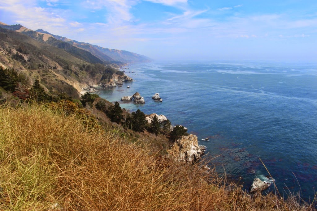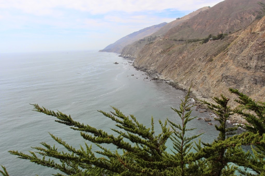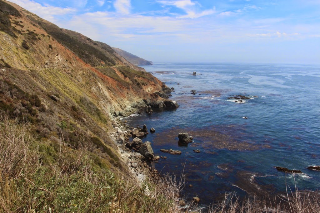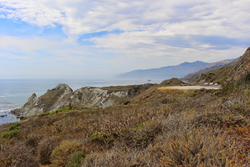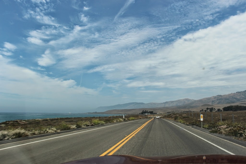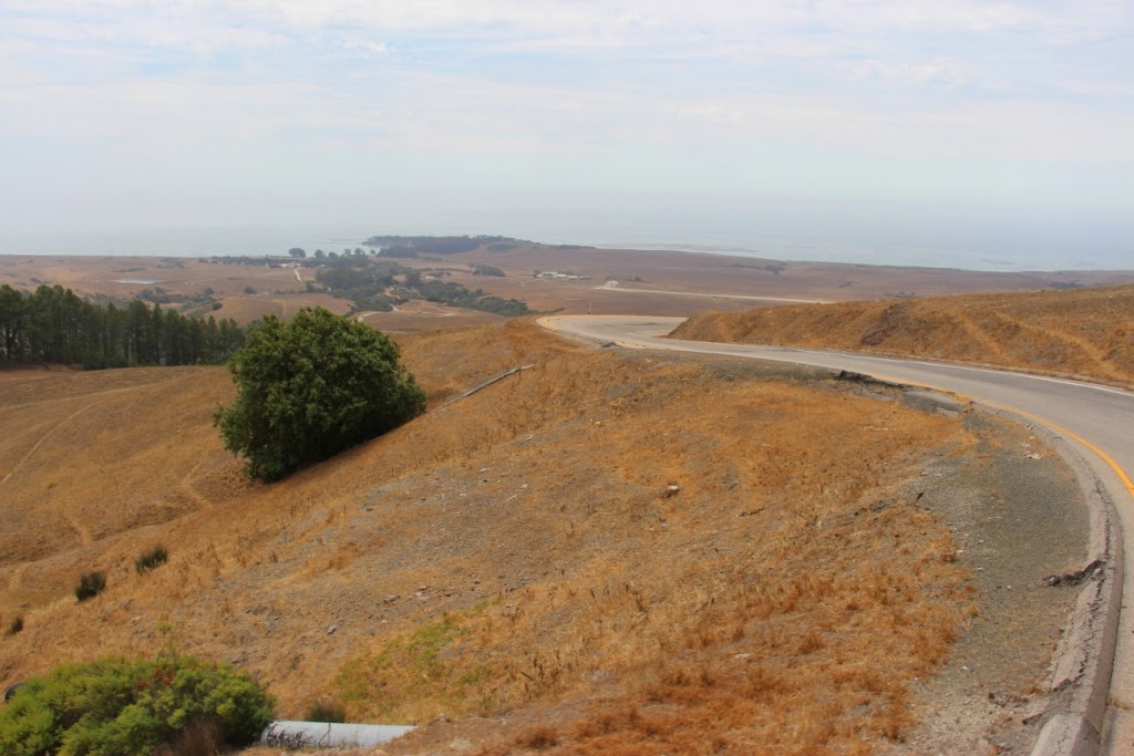 | Our destination is Hearst Castle just visible at the top of the mountain |