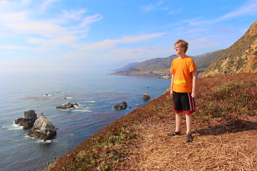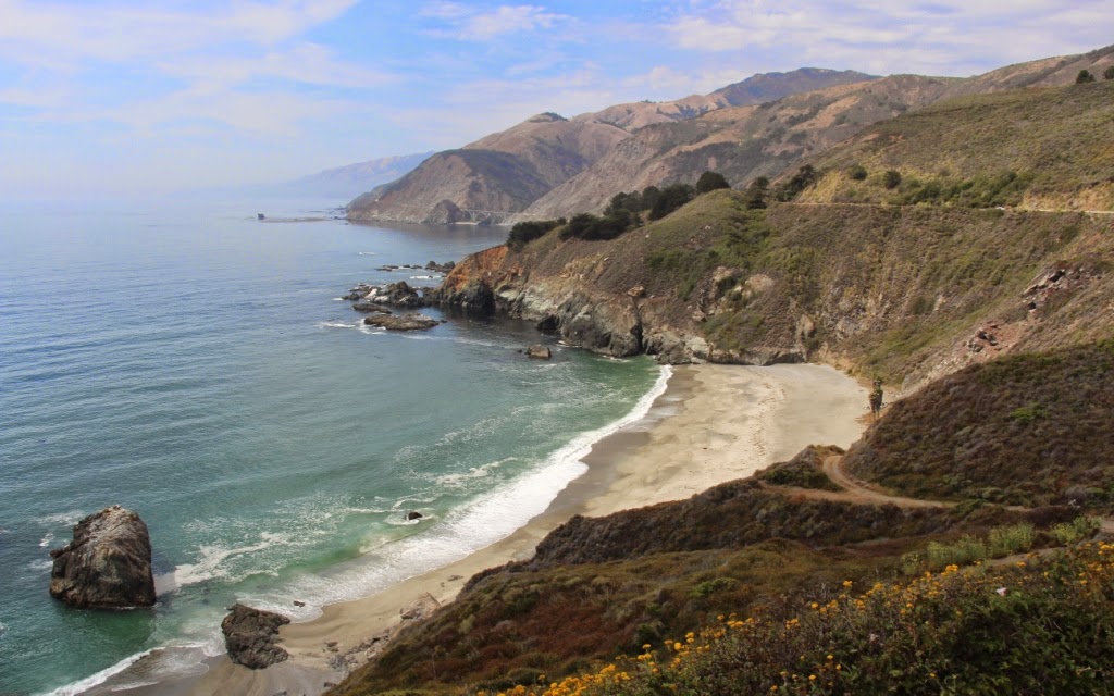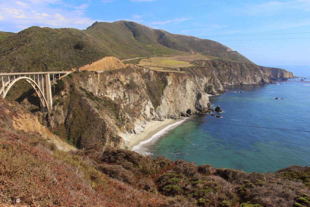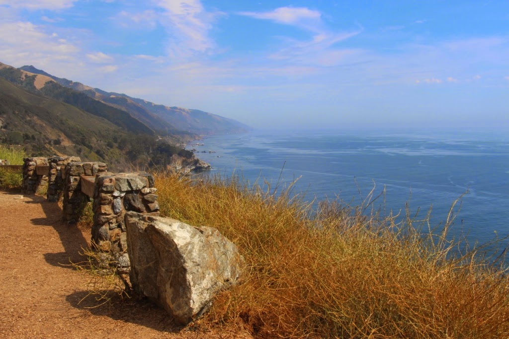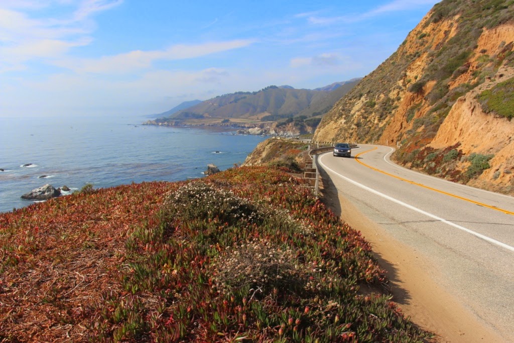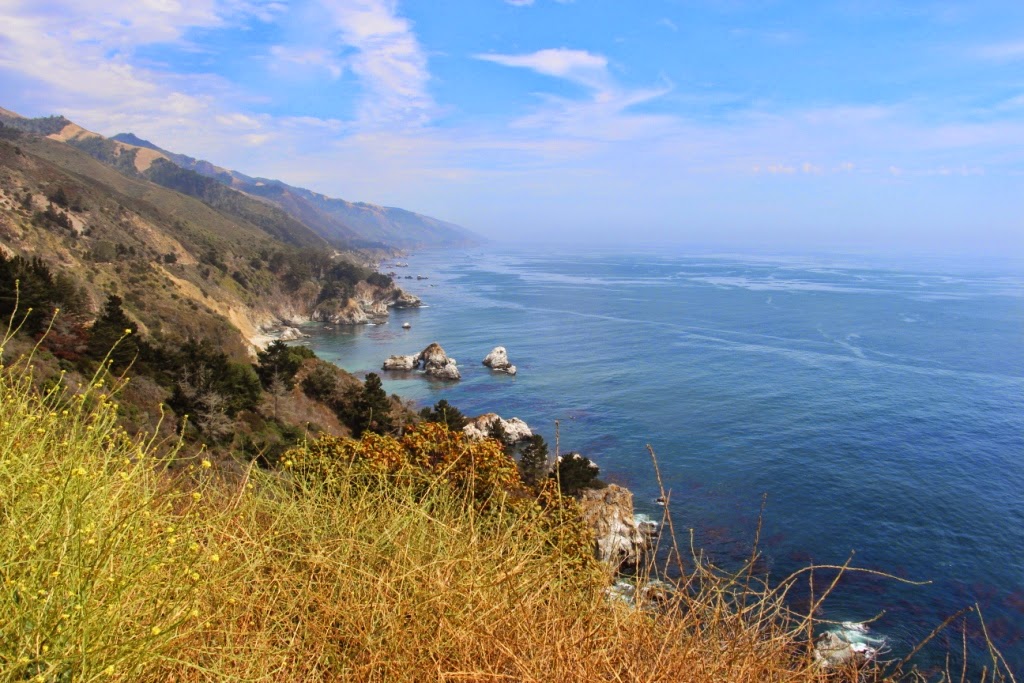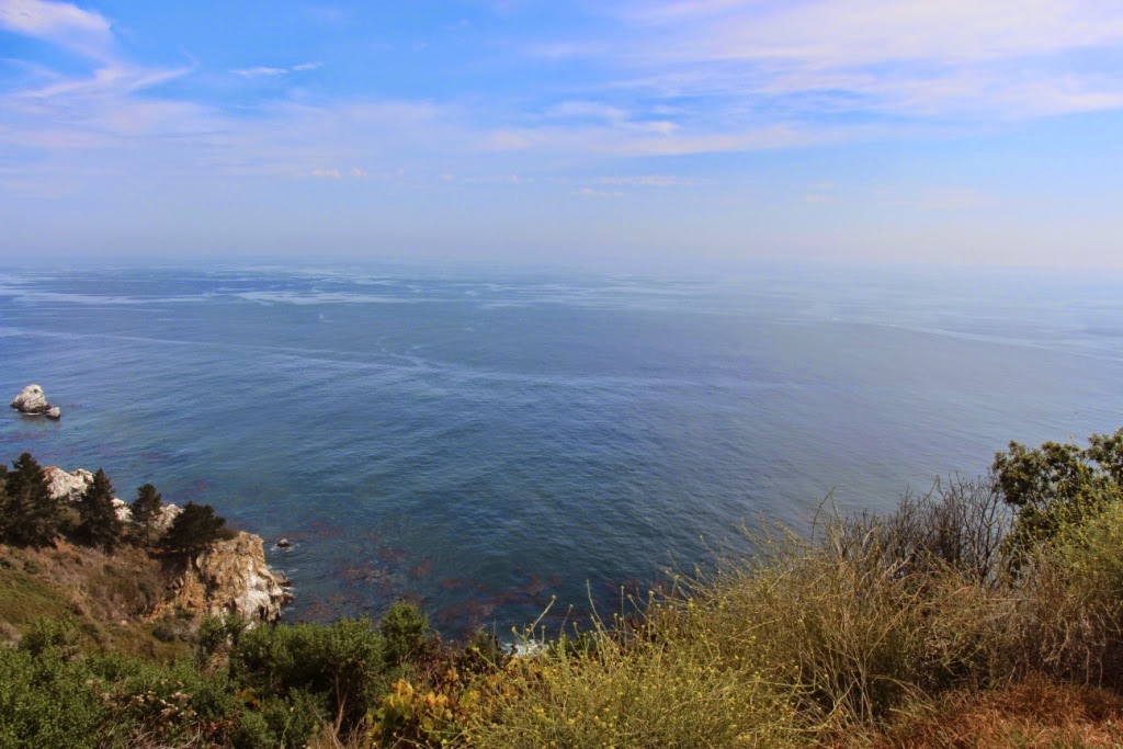 | Our destination is Hearst Castle just visible at the top of the mountain |