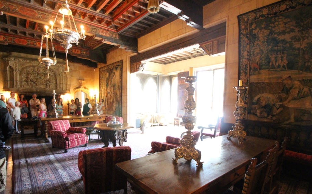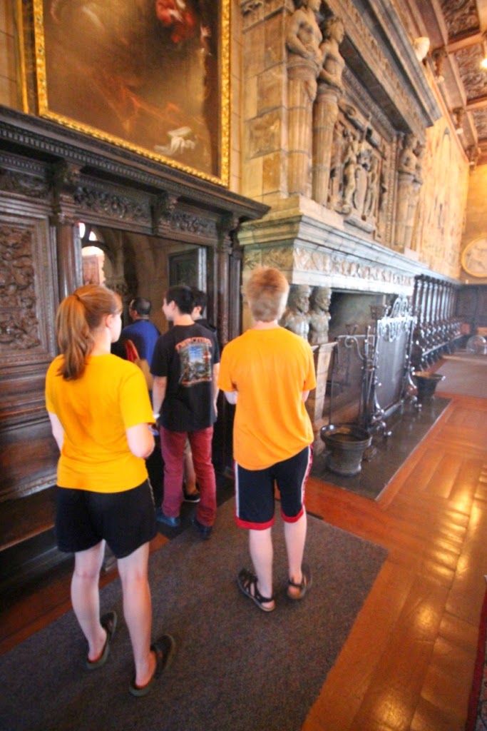 | Our tour starts in the grand living room full of old European relics and antiques |