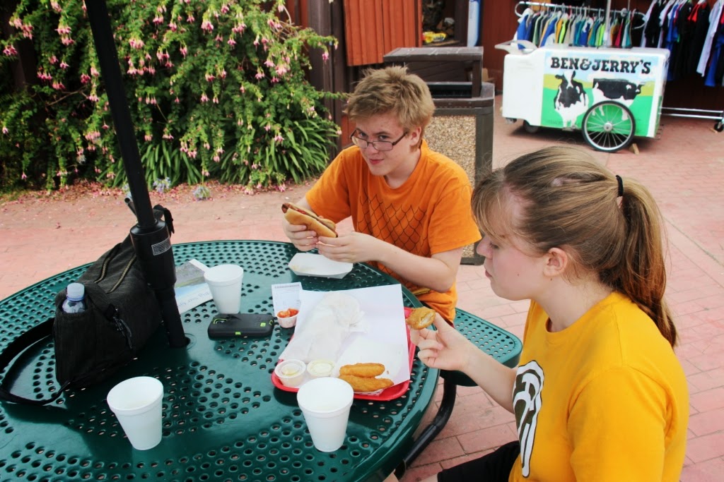 | Waiting for the bus to take us up the winding 5 mile road to the castle |